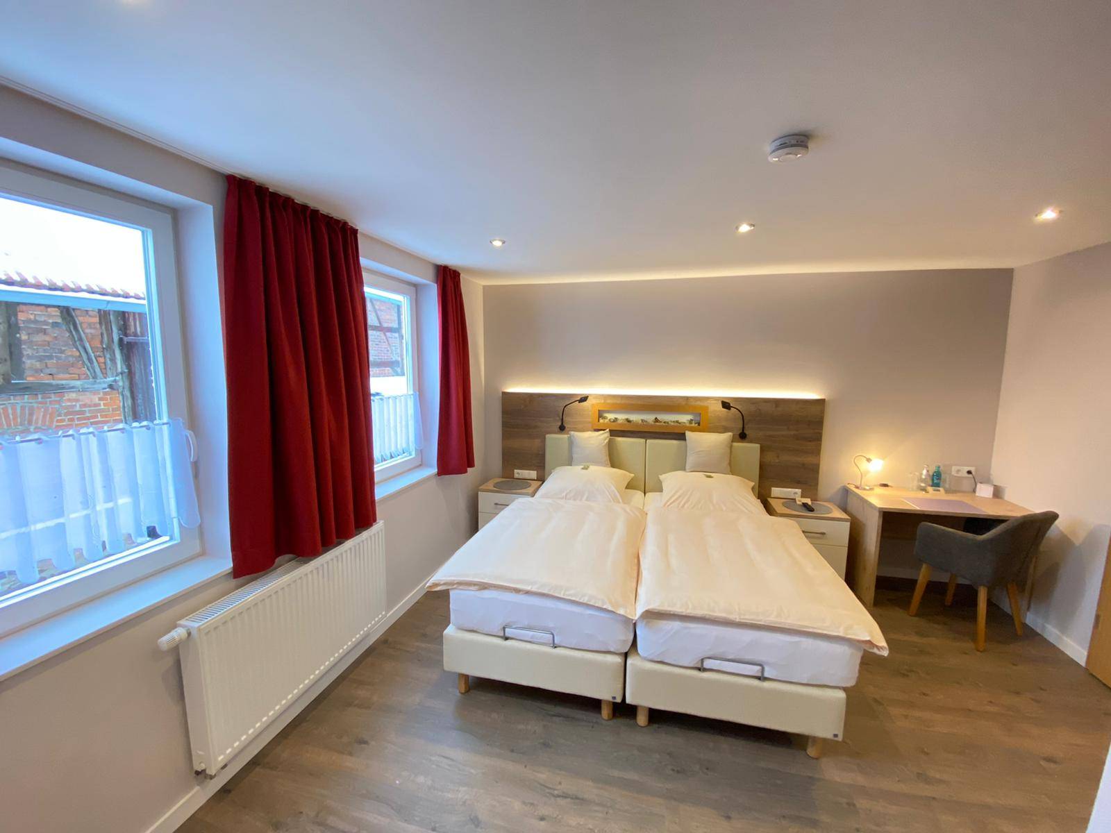 Wer die Küche lieber kalt lässt, dem kochen wir etwas Leckeres im nebenstehenden Gasthaus mit Biergarten. Zum Frühstück bitten wir um Anmeldung (10,50 € mit Getränken und Eispeisen). Gern können Sie das Abendessen im Rahmen unser Halbpension buchen (17,50 € für ein 3-Gänge-Menü).